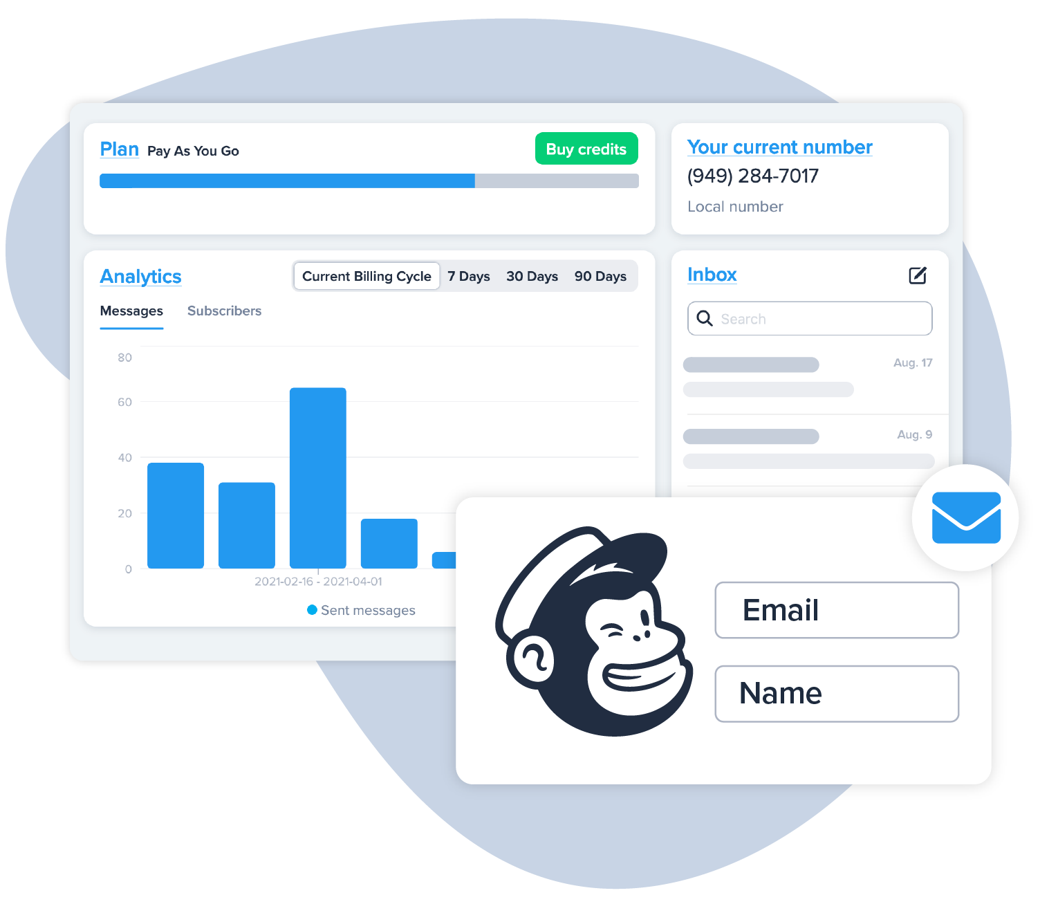 Using our built-in Data Collection tool, you can prompt new text contacts to provide their email addresses to join your email list. After someone replies with their email, it will be instantly synced with Mailchimp.Send Your First Message in Minutes