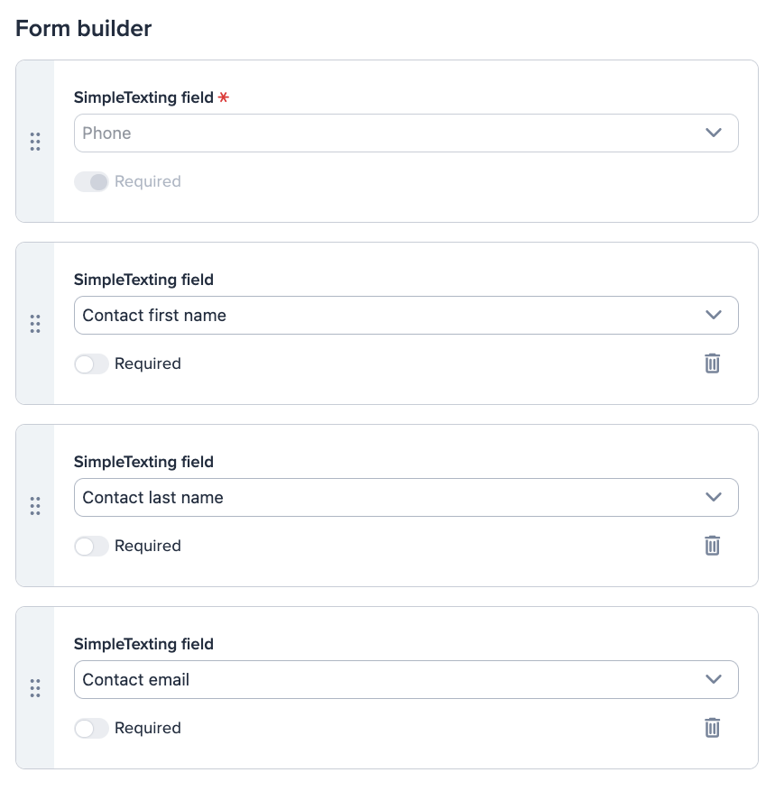 The mobile phone number field is automatically added to your sign-up form, but you can also select additional fields including email address, first name, and last name.