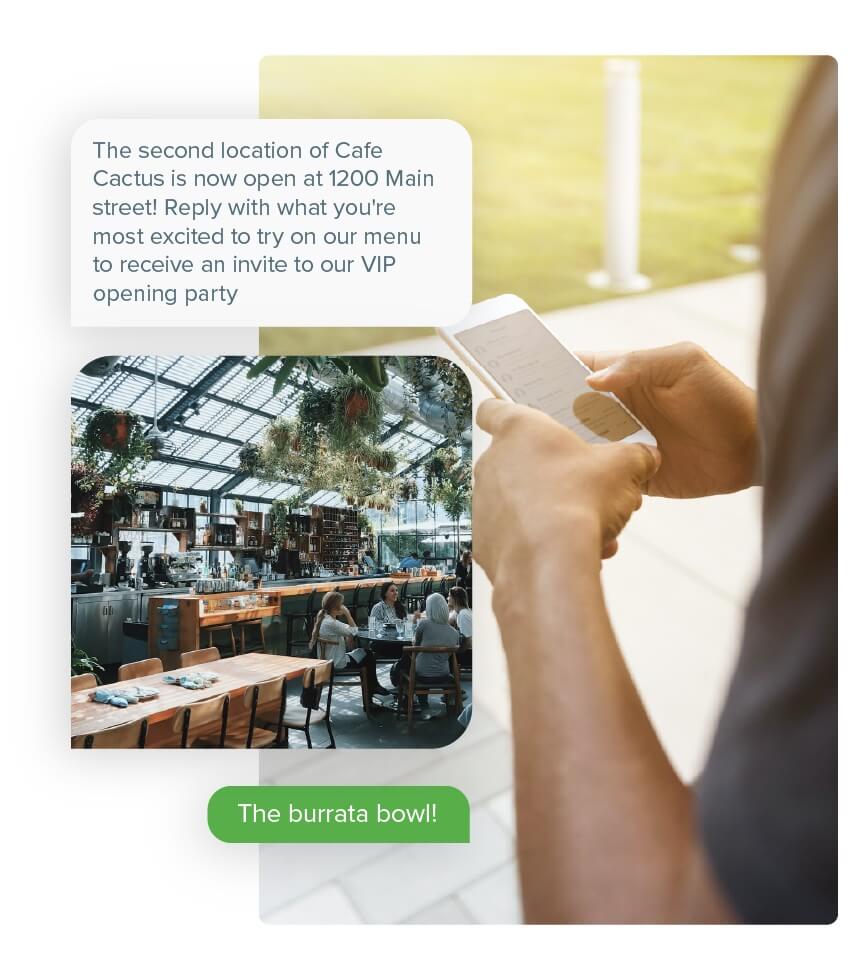 - Most promotional text messages will benefit from including photos, GIFs, or videos.