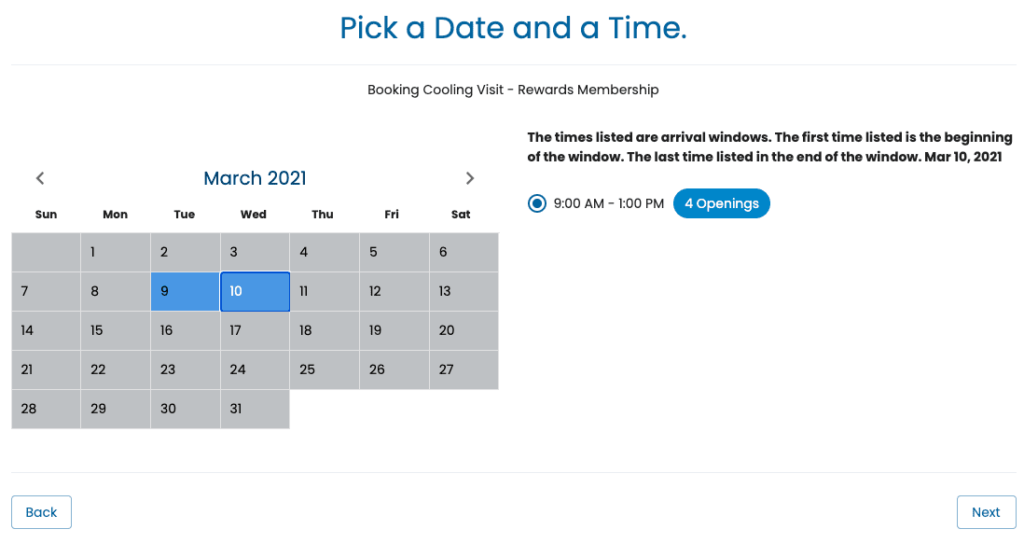 The link takes customers to an online calendar where they can select a time that suits them.