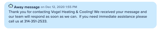It’s hard to estimate how much time these text messages have saved the team at Vogel Heating & Cooling, but Brian says it’s eliminated about 50% of the company’s phone calls.