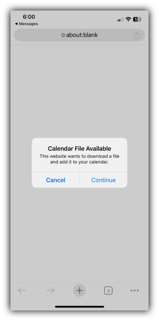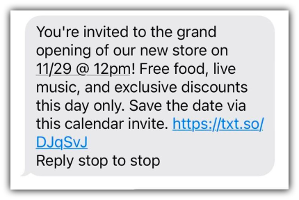 Another type of invitation sending an actual calendar link via text message: