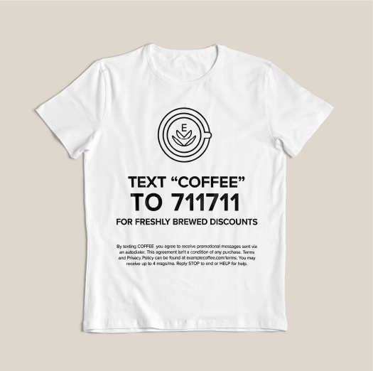 If you run a brick-and-mortar business, take advantage of the real estate on the back of your employee’s uniforms. Print custom t-shirts with your shortcode and keyword.