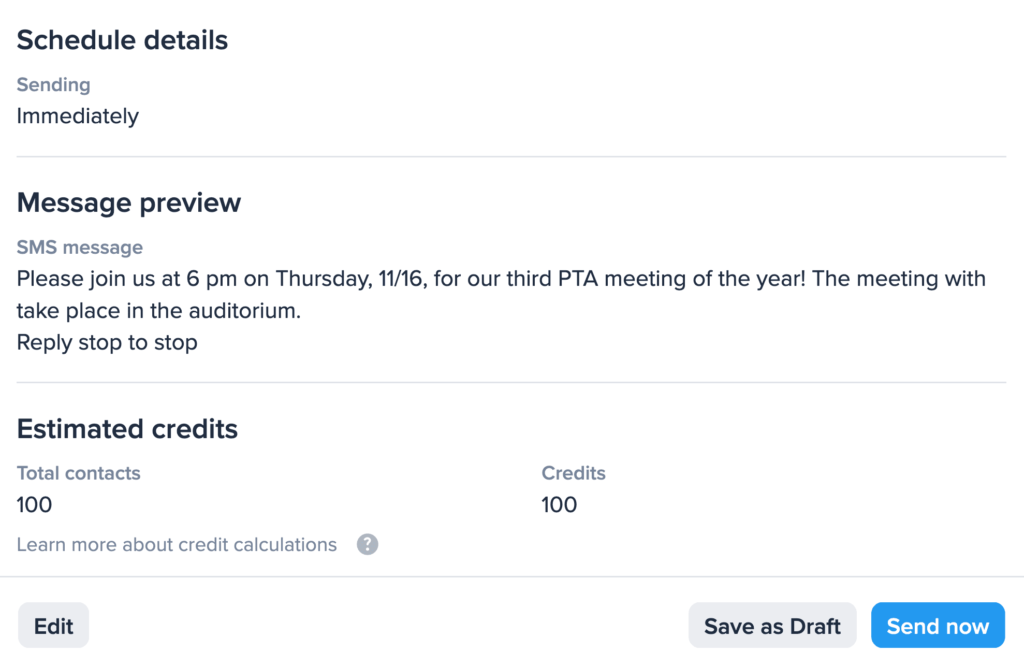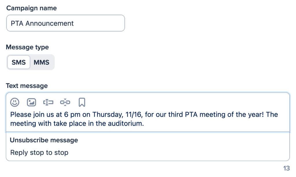 💡 Did you know you can personalize BCC texts? If you need to send your BCC text to a group of 1,000 people, you can make each one feel like it was sent directly to them by adding custom fields for their name. We’ll cover how in the next section.