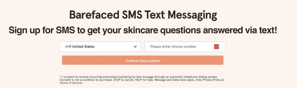 Barefaced offers customers the opportunity to get their skin care questions answered via text. This is a genius way to build trust with customers and provide personalized product recommendations.
