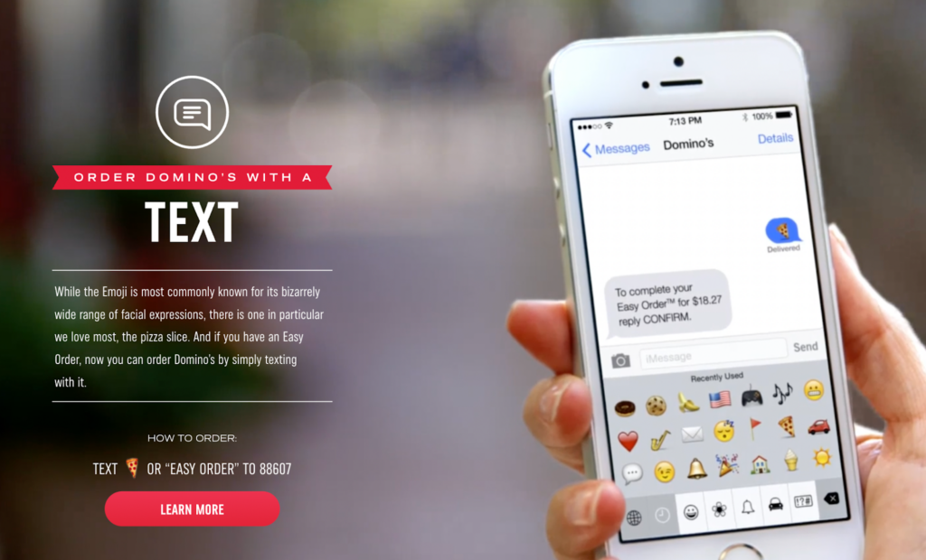 They also made headlines in 2015 when they introduced their pizza emoji SMS ordering system (yes, you read that right). Customers can text a pizza emoji to 88607 to place an order.