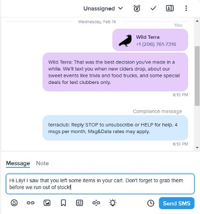 If you serve a relatively small customer base or want the option to send out individual abandoned cart texts, I recommend the SimpleTexting inbox.