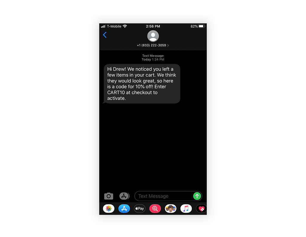 Texting gives you the opportunity to get personal with your customers. If you have the capacity to text your customers one-on-one, why not use it in your abandoned cart strategy?