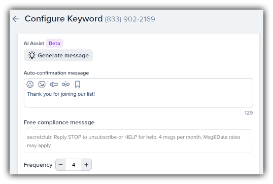 Fast follow-ups are essential for keeping customers happy, so set up confirmation texts to go out as soon as customers confirm their subscriptions.