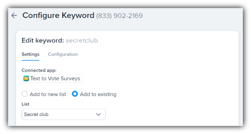 2. Decide what your keyword will be and choose the list where new contacts who you use it will go (or create a new one).