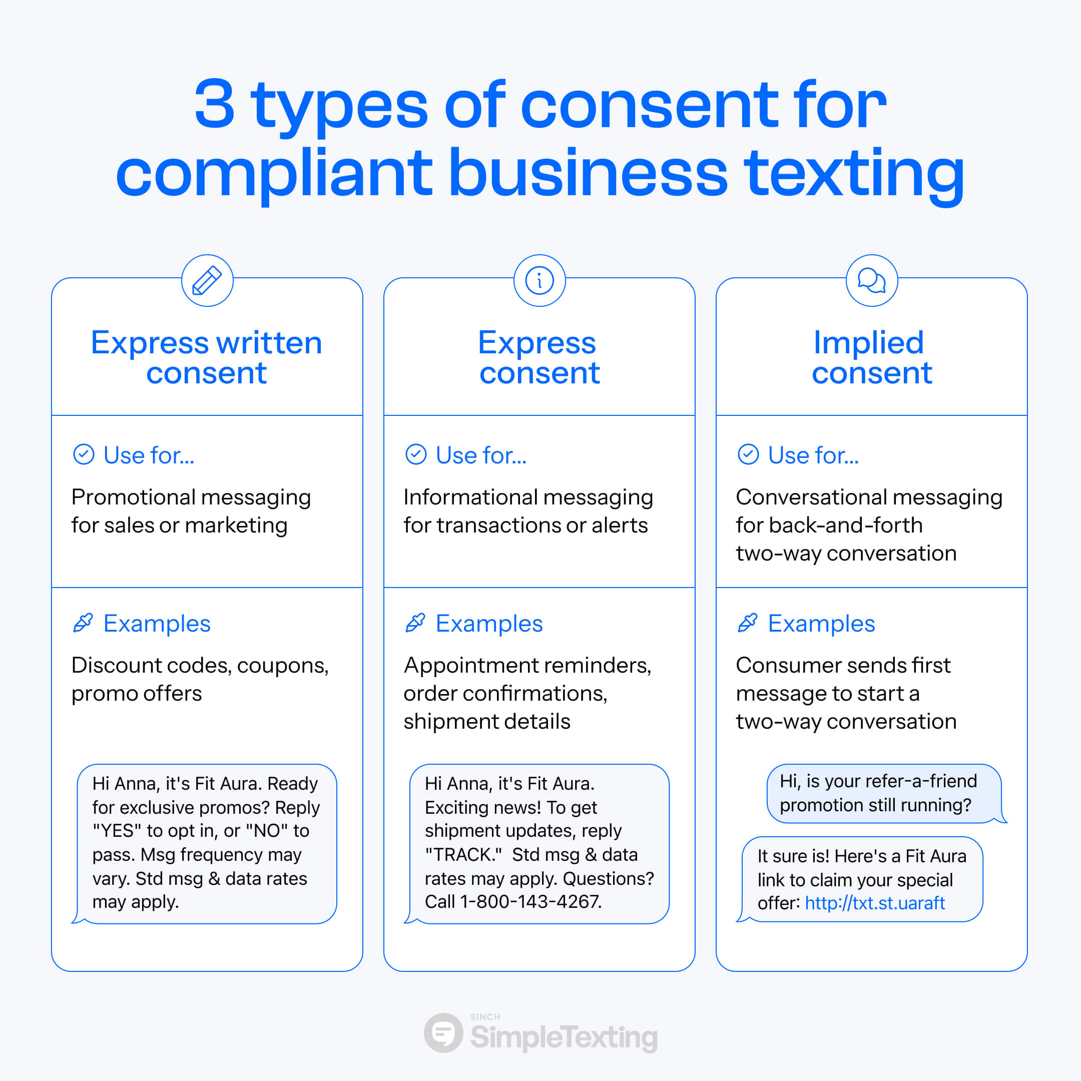 When you get express consent, you can send conversational and informational text messages to consumers.