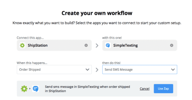 Thankfully, Zapier makes the process of sending SMS shipping updates from SimpleTexting incredibly straightforward.