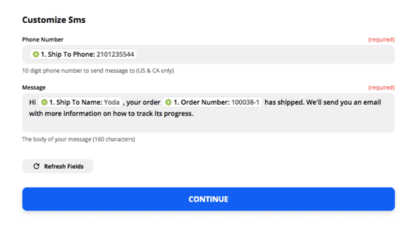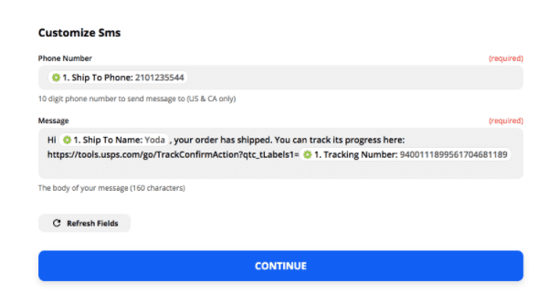All you need to do is follow the steps and then customize your message with the “Ship to Phone Number” field. You can even add an element of personalization by including the person’s first name.