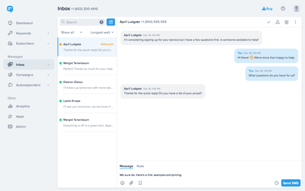 7. SimpleTexting