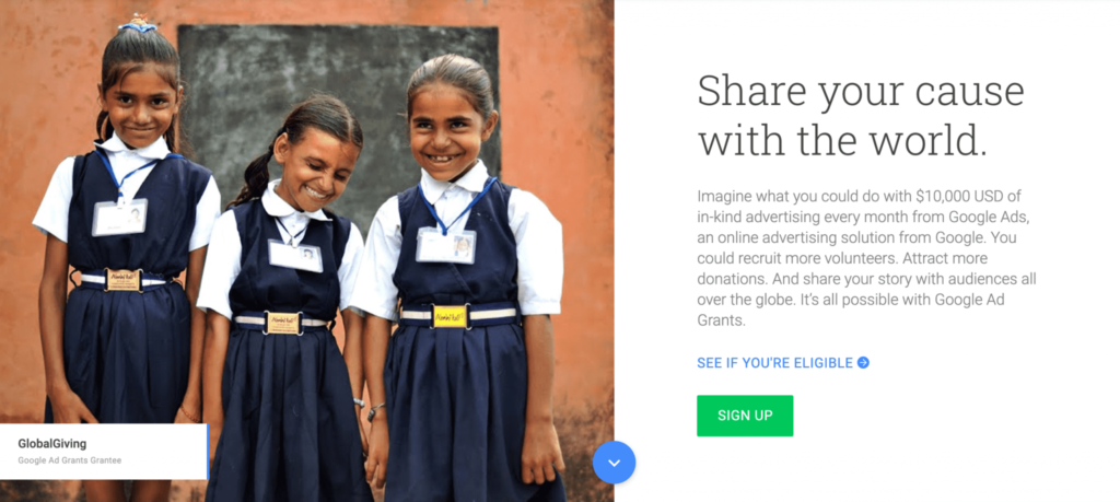 However, these ads, while effective, can get a little pricey. That’s where Ad Grants really help. Any 501(c)(3) can apply for this grant through a free Google Ads account. If your organization is approved, you’ll receive a $10,000 monthly stipend to run your advertisements!