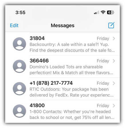 I also like to see the brand name at the beginning of texts. This helps me use my iPhone Messages preview screen to easily understand who texted me, which is useful when I don’t have the brand programmed in my contacts.