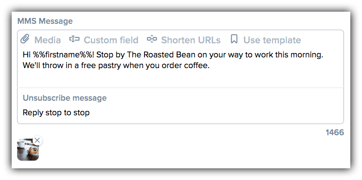 A series of A/B tests that pitted messages with and without multimedia elements against each other found that texts that include pictures generate a higher CTR. While you don’t need any design skills to send an SMS campaign, you’re not limited to pure text.