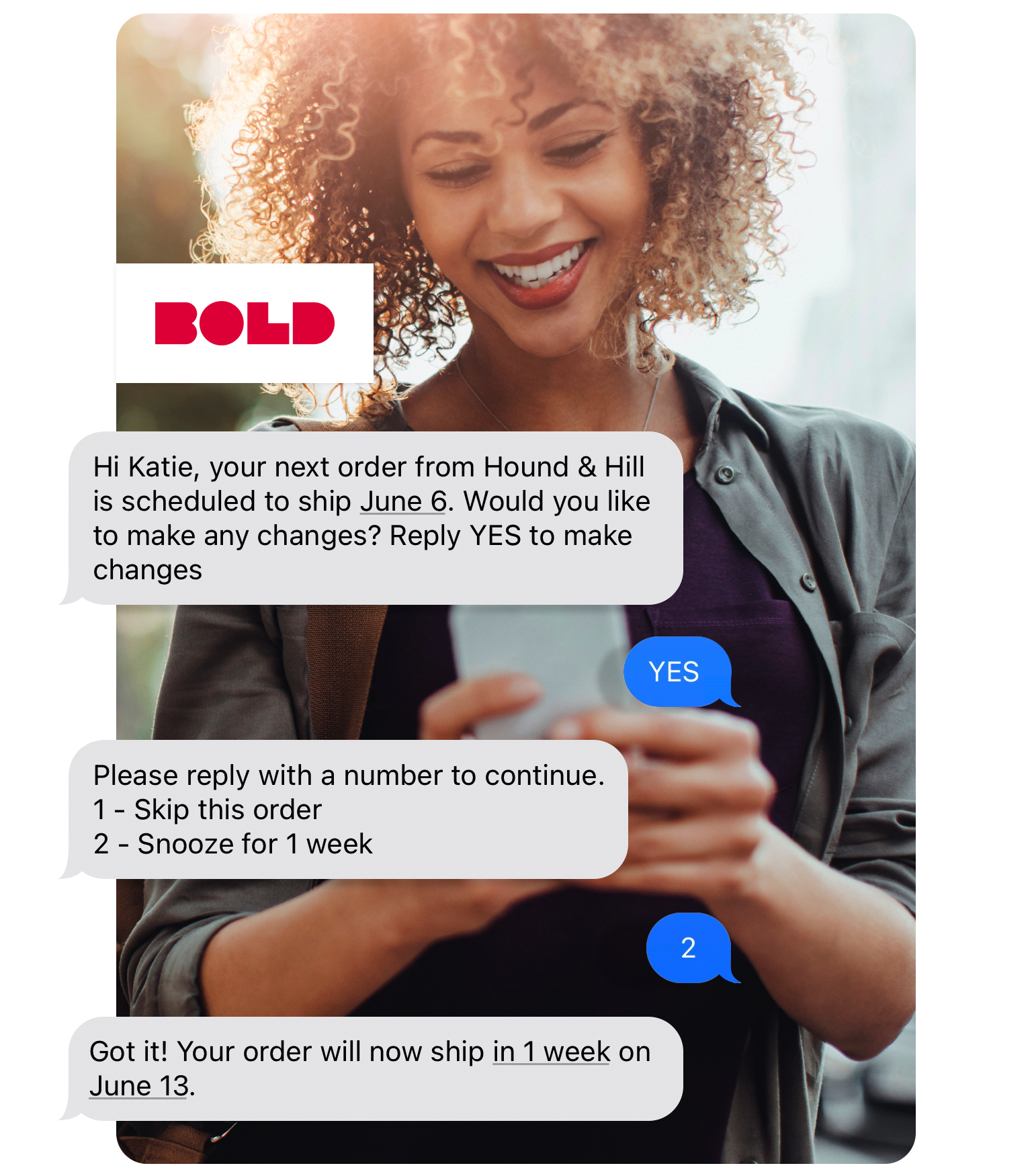 - Allow customers to make changes via text with upcoming order reminders