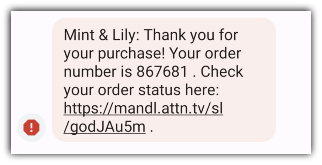 It’s always best practice to send out a purchase confirmation text when a customer completes their sale. Jewelry brand Mint & Lily sends one out every time I snag a new necklace (which is way too often).