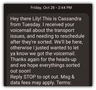 That’s partly because they took the time to reach out and partly because I knew I could get an appointment slot with them based on the text they sent.