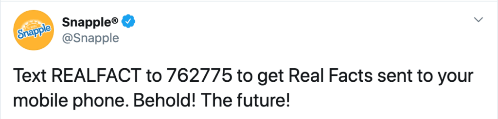 As the decades passed and the world went digital, so too did the beloved Snapple facts tradition. Now, you can have a Snapple fact texted right to your phone!